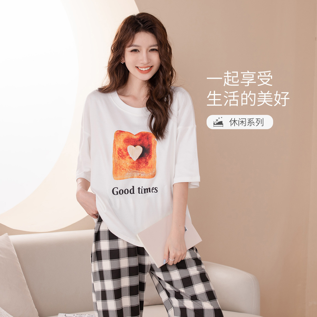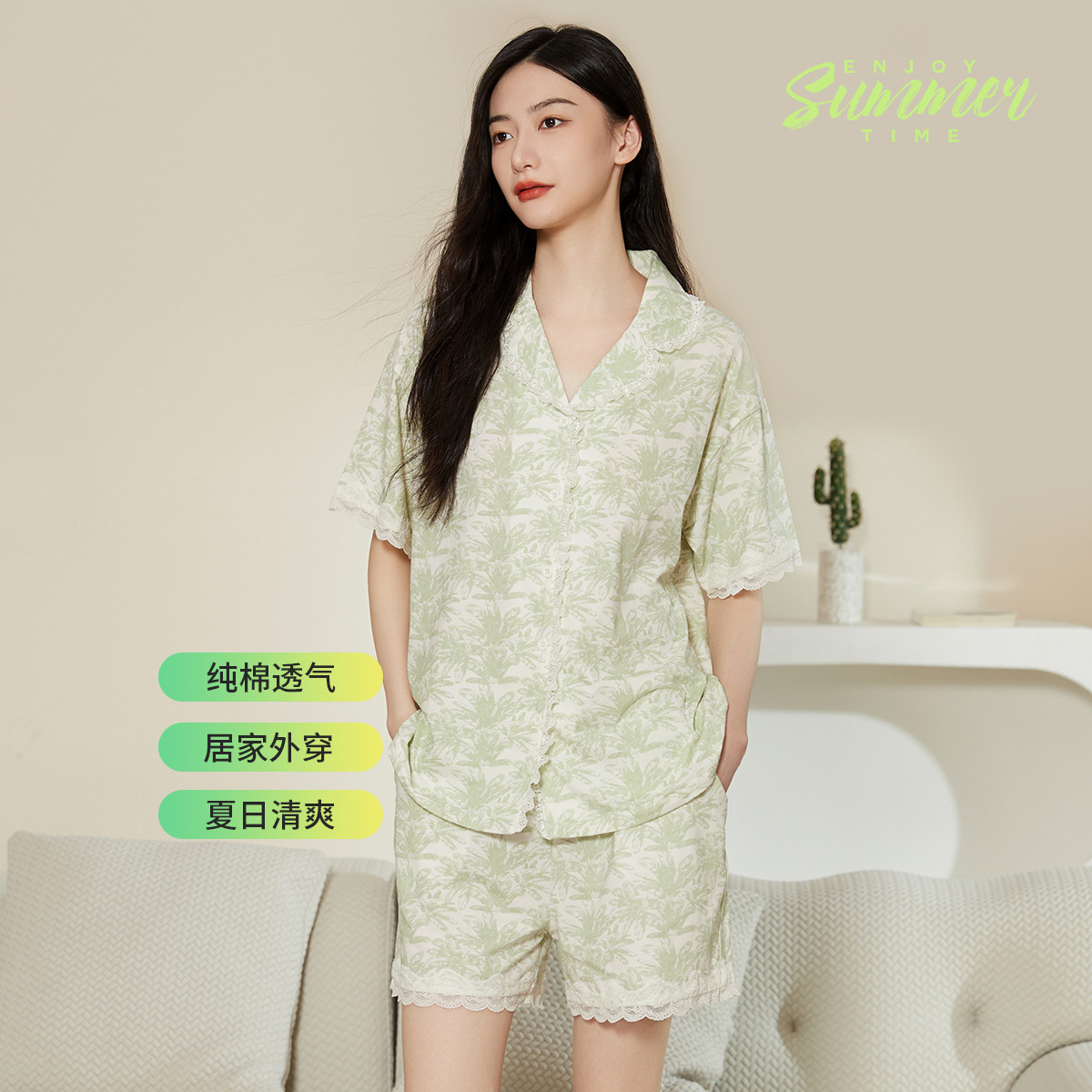 【100%棉】可外穿女士睡衣春夏款舒适纯棉短袖家居服套装 455755