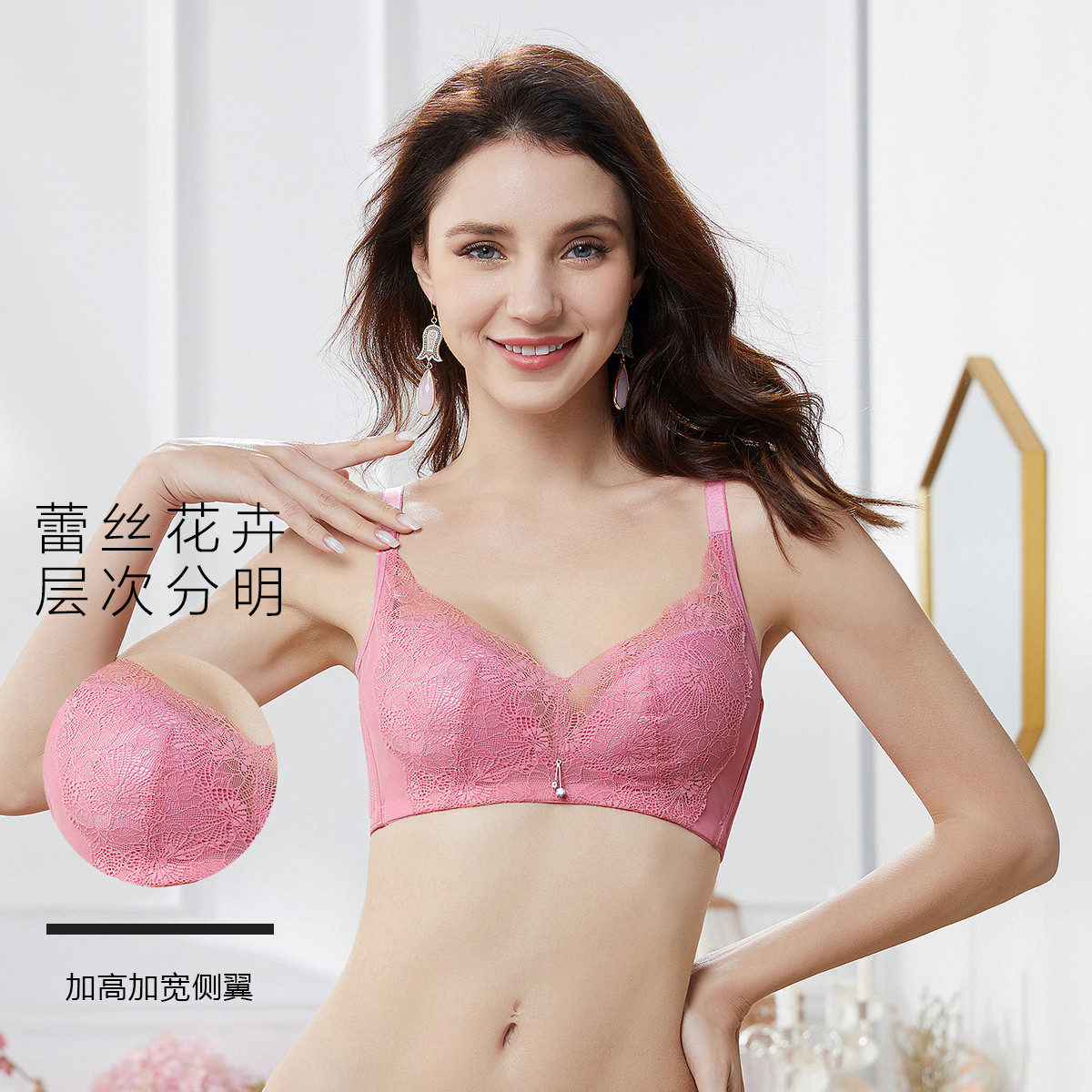 【纯棉里杯】舒适透气蕾丝美背内衣无钢圈上托侧收副乳文胸罩内衣 429771