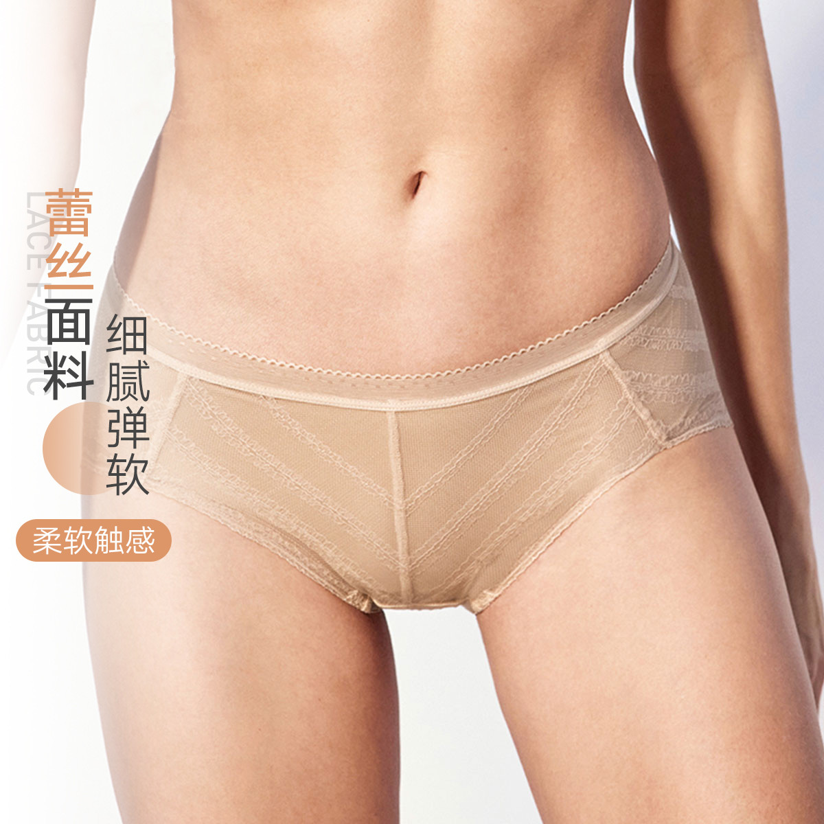 轻盈透气无束缚中低腰三角裤不夹臀性感轻薄蕾丝内裤女棉质底裆 427739