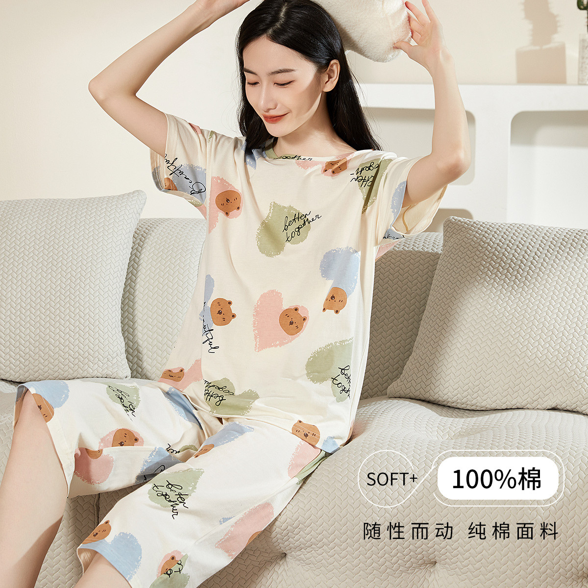 【100%棉】爱心纯棉睡衣女士家居服可外穿柔软舒适透气套装 903051