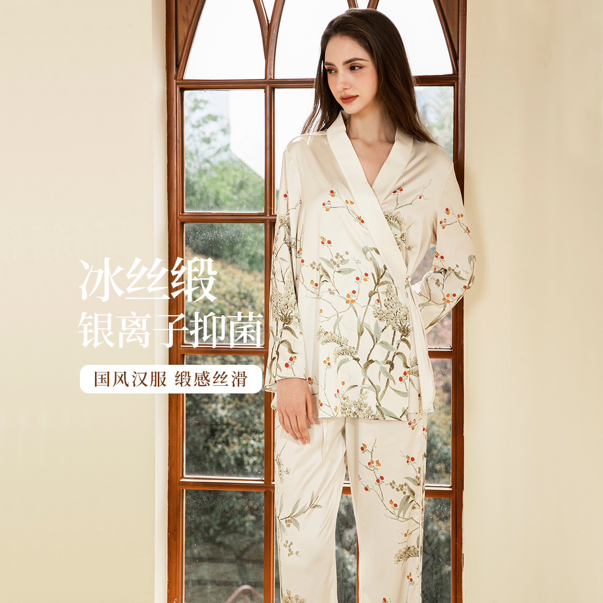 【国风冰丝缎】丝滑长袖长裤睡衣女春夏古风汉服家居服套装可外穿 285451