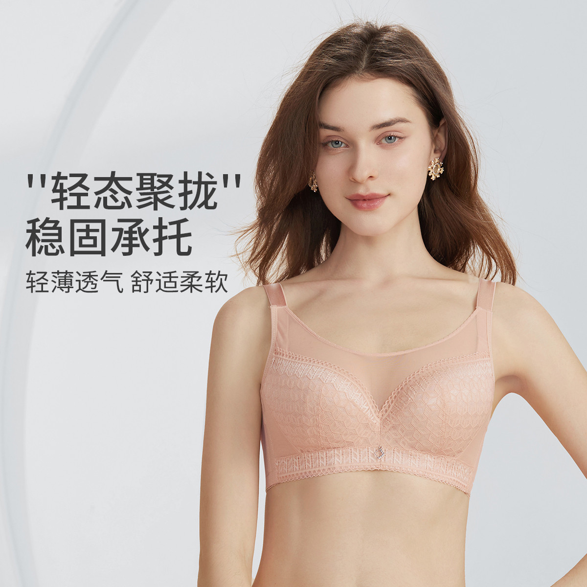 【聚拢不空杯】文胸罩夏季无钢圈蕾丝网纱透气上托收副乳内衣女 487691