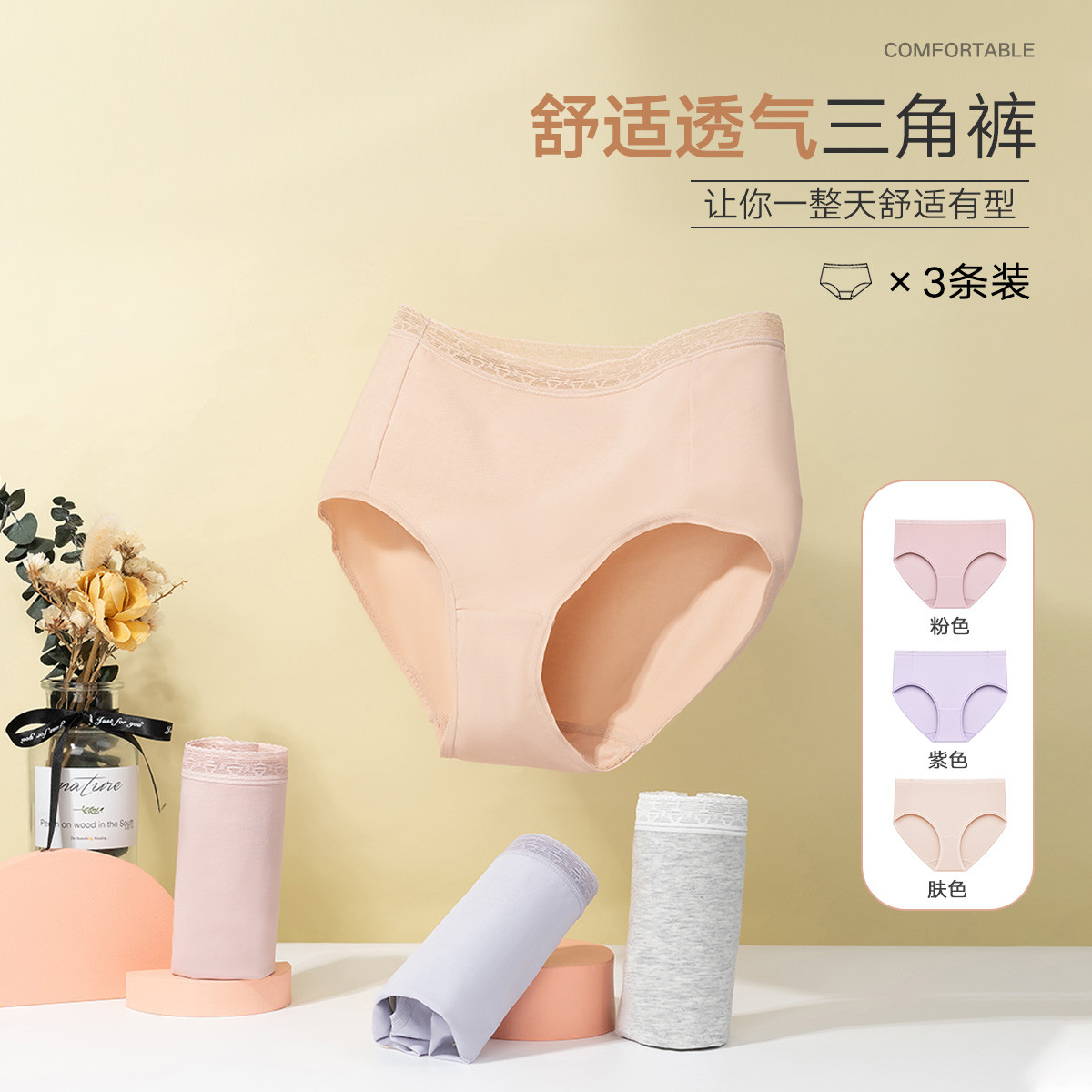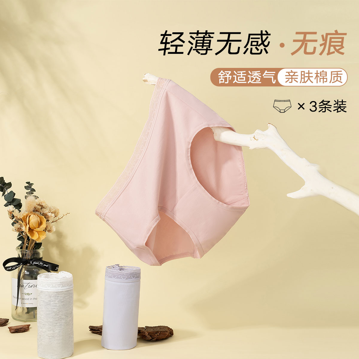 3条装【棉质中腰三角裤抑菌底档】高弹无痕包容中腰蕾丝内裤透气 664987