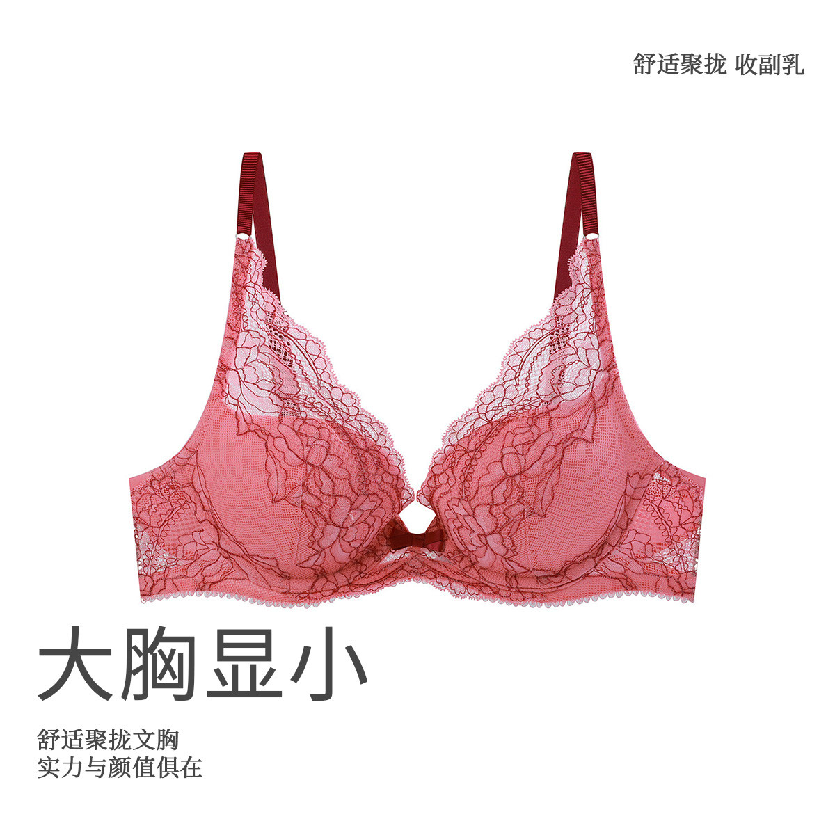 【调整聚拢】黛安芬内衣大胸显小蕾丝深V文胸女E003599 547208