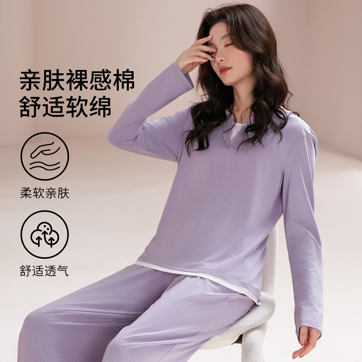【100%棉】可外穿家居服套装女士春秋款高级感长袖长裤睡衣 607883