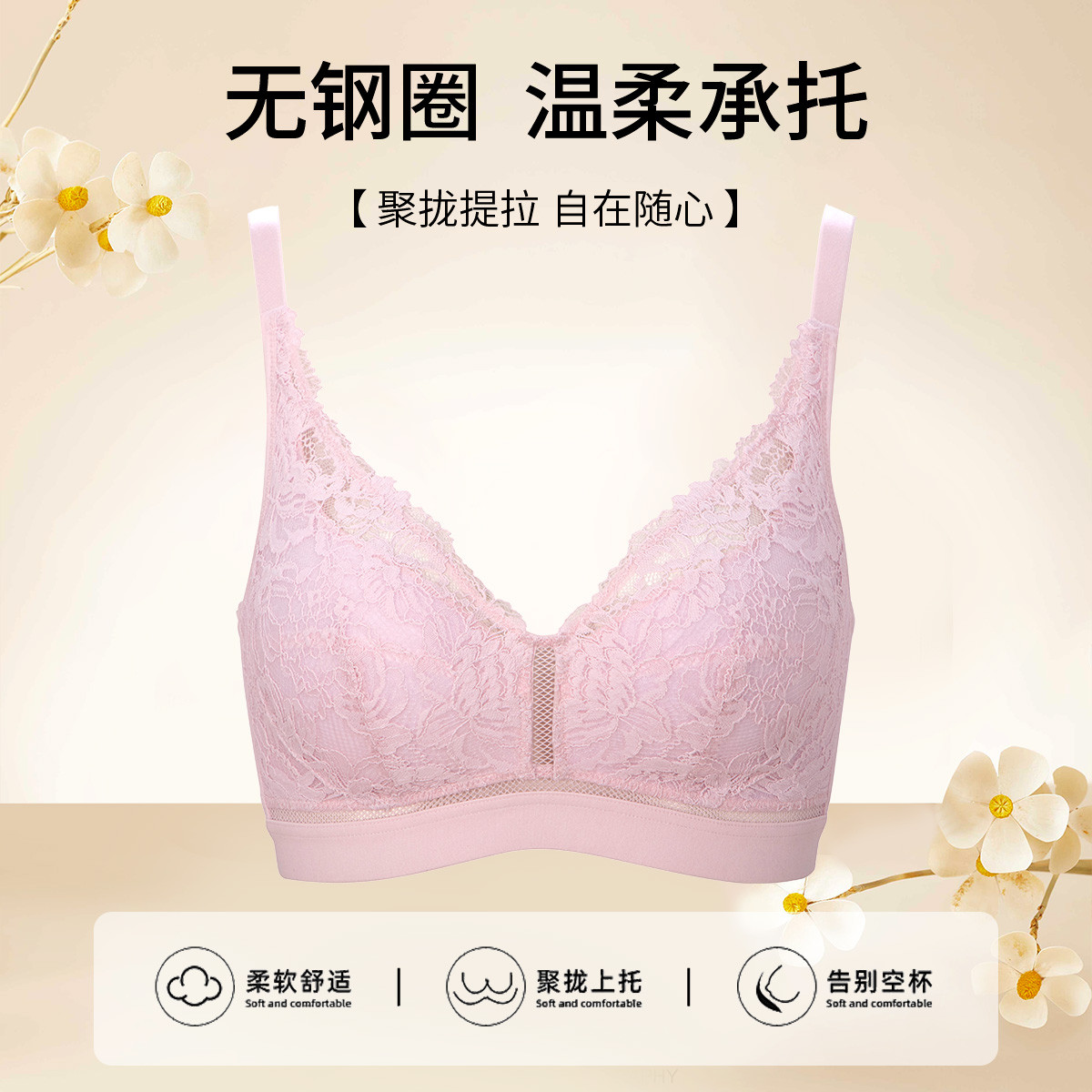 【精致透气 花瓣杯】清爽性感花卉蕾丝舒适承托薄杯内衣文胸女士 576715