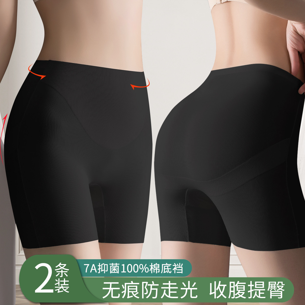 【无痕防走光7A抑菌】2条高腰收腹提臀安全裤平角打底女士内裤 491294
