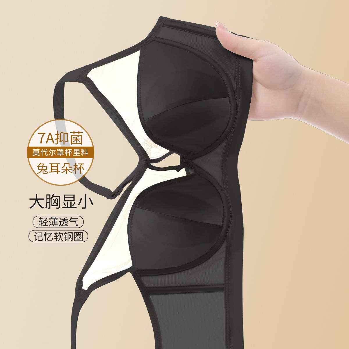 【7A抑菌莫代尔兔耳朵杯】轻薄透气聚拢提拉侧收内衣女士文胸罩 963614
