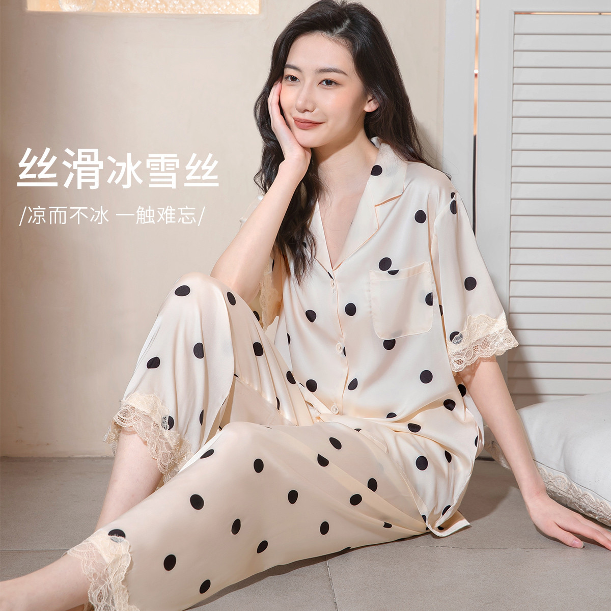 【蕾丝波点】珍珠奶茶春垂顺秋舒适套装可外穿柔软睡衣女士家居服 401739
