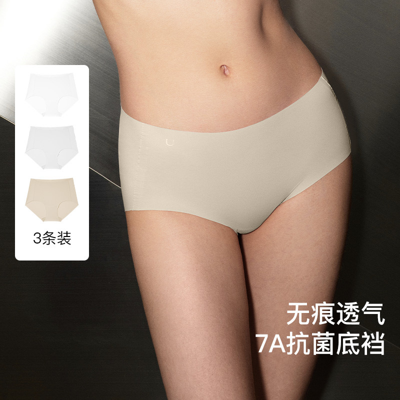 【透气网孔底档】3条装无尺码包臀中腰三角裤无痕不夹臀内裤女 345408