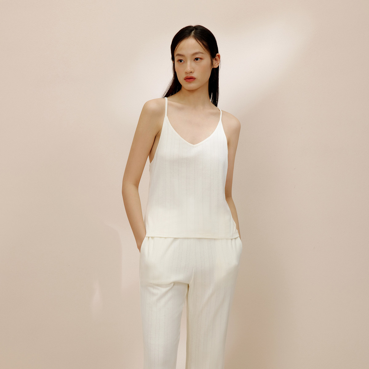 内外少女长绒棉挑孔吊带睡衣背心家居服镂空条纹日常休闲 905418
