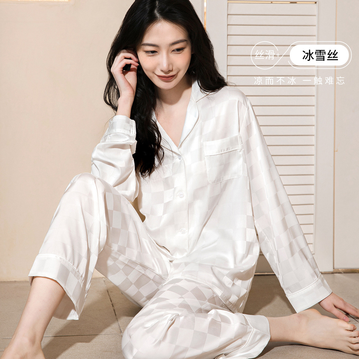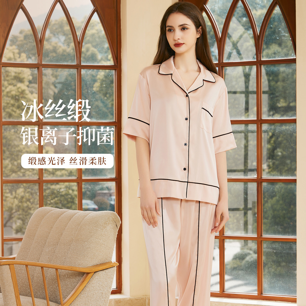 【轻奢冰丝缎】睡衣女春夏款衬衫式翻领家居服套装可外穿 155531