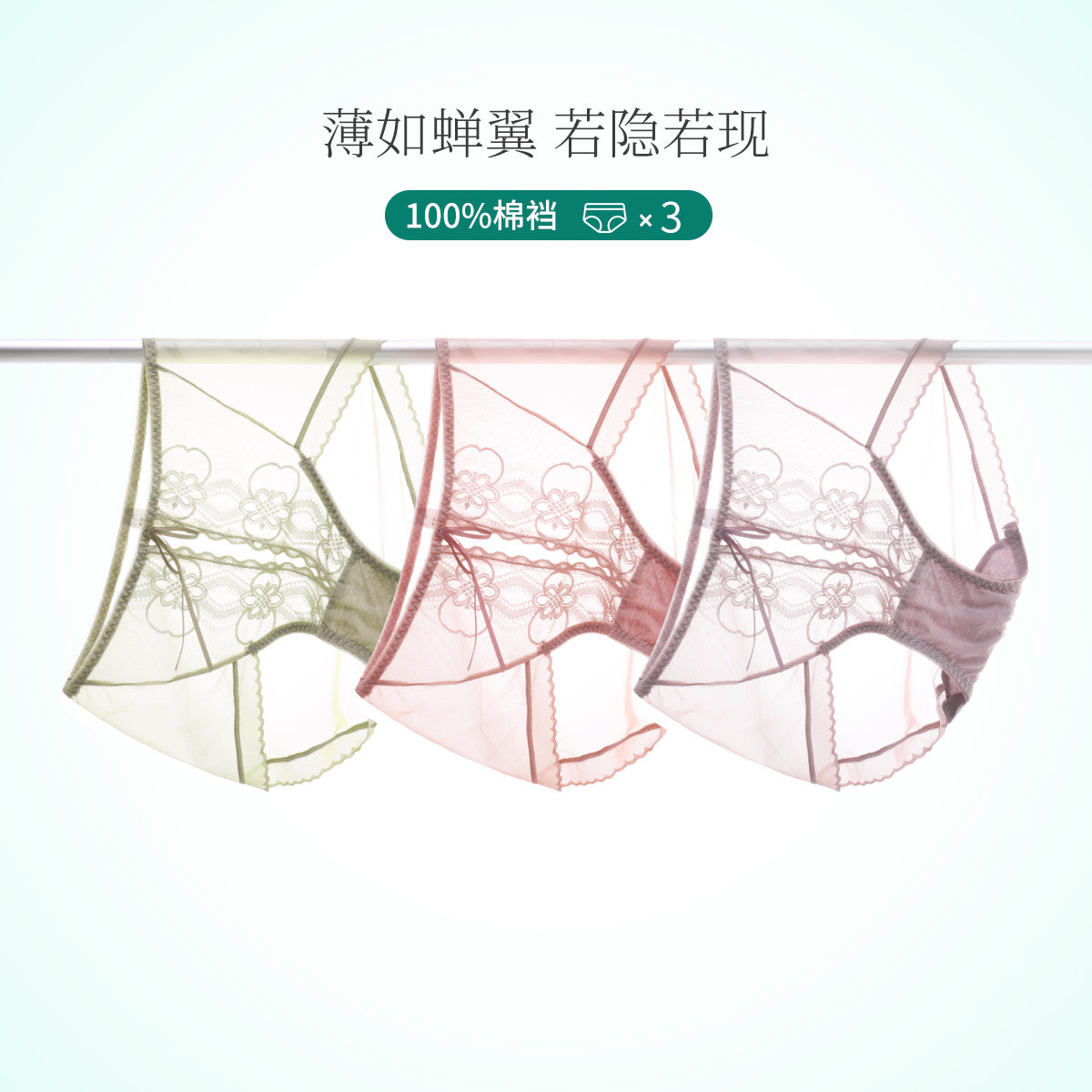 【夏季薄款 纯棉档】3条装透视蕾丝性感网纱氧气女士内裤内裤女 729886