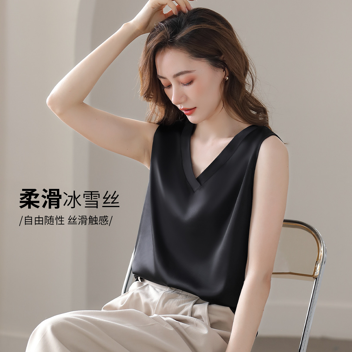 【舒适柔顺】纯色V领性感OL宽吊带背心女背心大衣打底内搭套头 666571