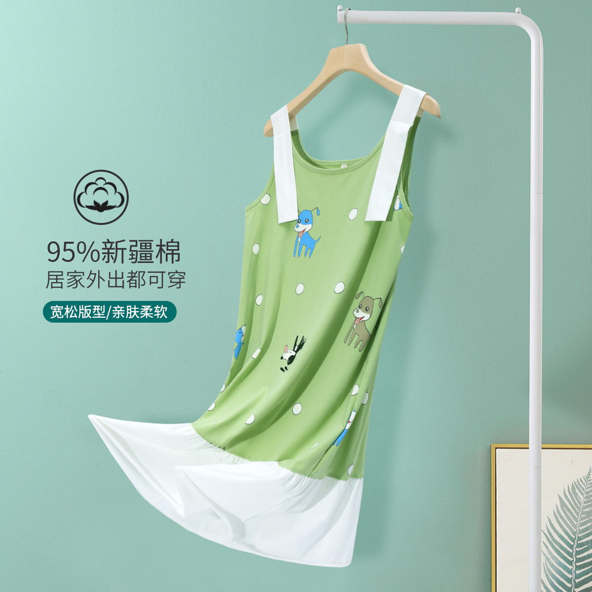 【优质棉】圆领睡裙女夏可外穿透气背心女士家居服舒适无袖睡衣女 706270
