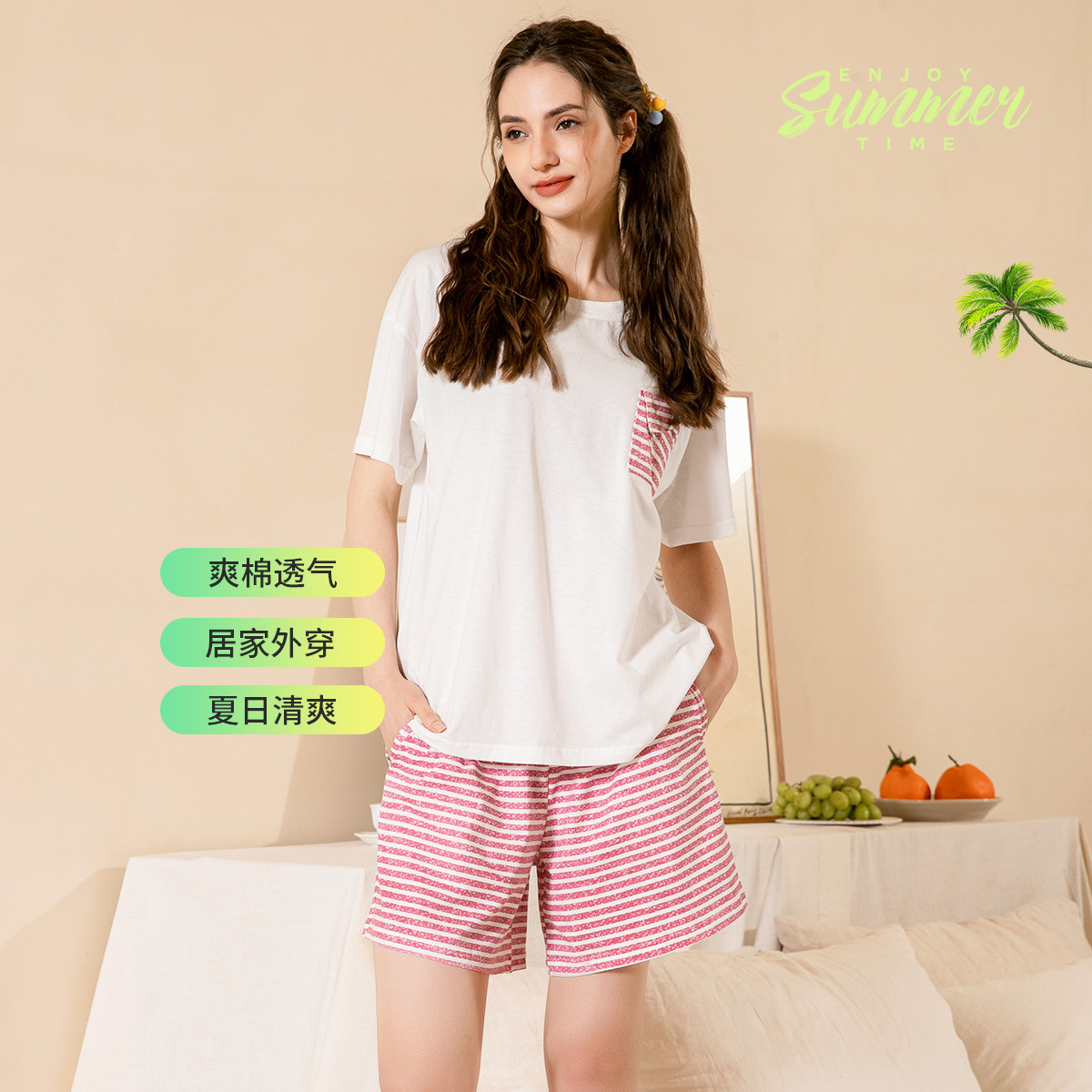 【简约休闲】短袖短裤睡衣女夏季薄款舒适棉质家居服套装可外穿 401803