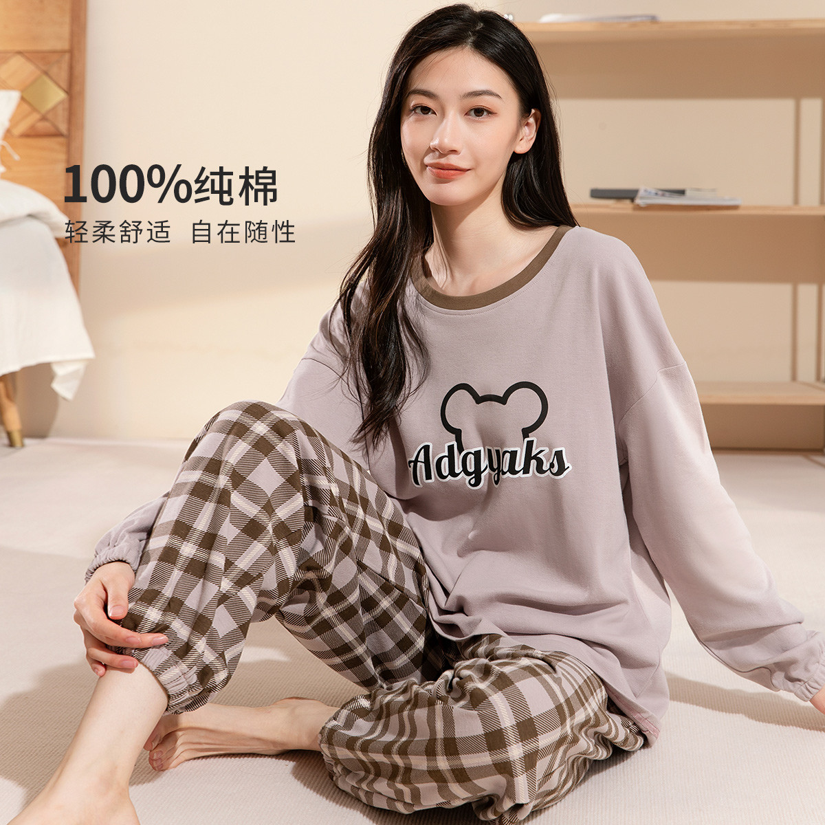 【100%棉】可外穿家居服套装春秋款纯棉长袖睡衣女士可盐可甜 723211