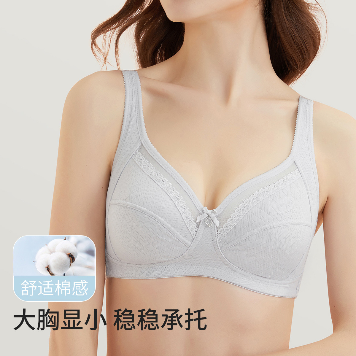 【大胸显小】无钢圈文胸夏季薄款纯棉里杯防凸点聚拢侧收内衣文胸 094795