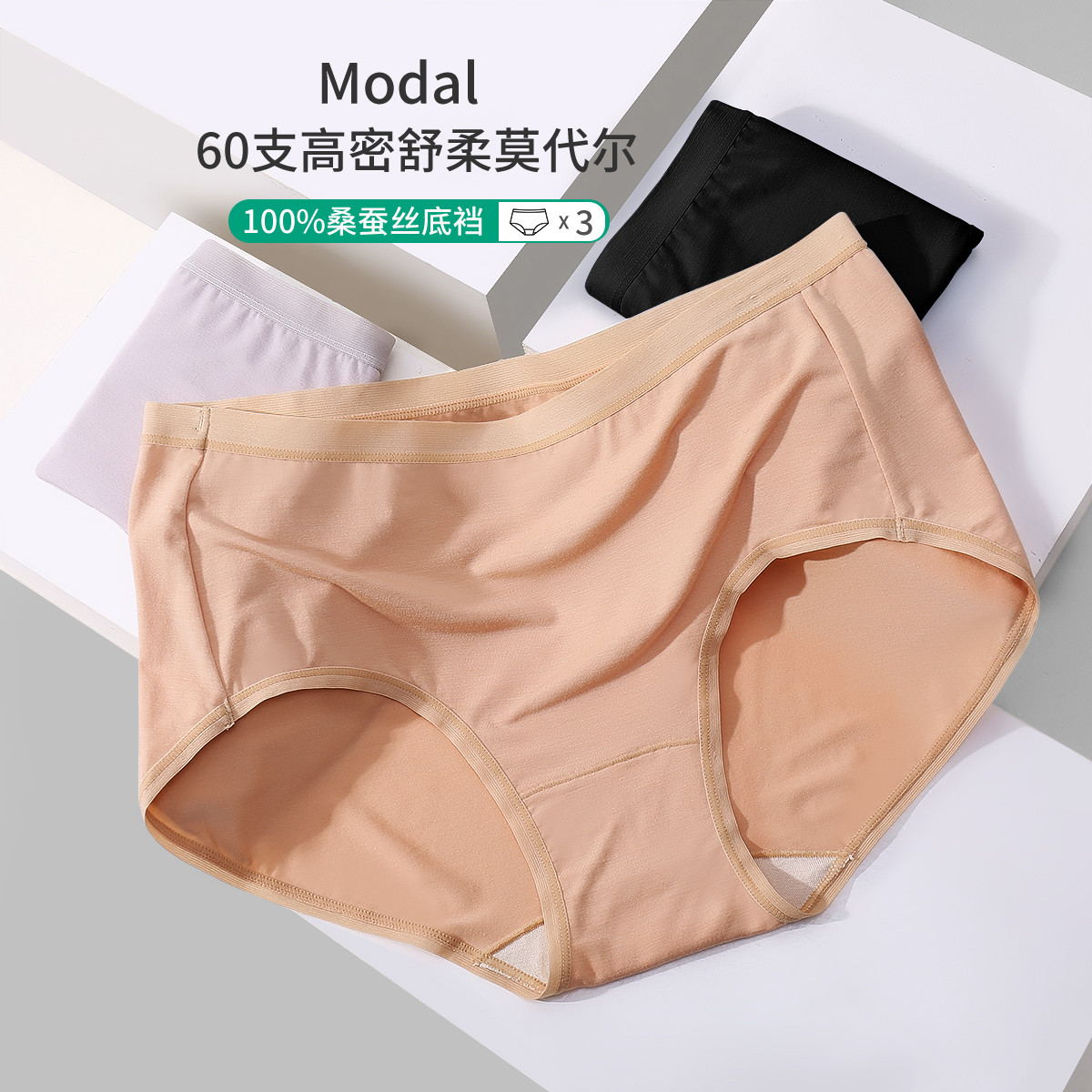 【100%桑蚕丝裆】3条装莫代尔透气纯色亲肤女士内裤夏季薄款 349214