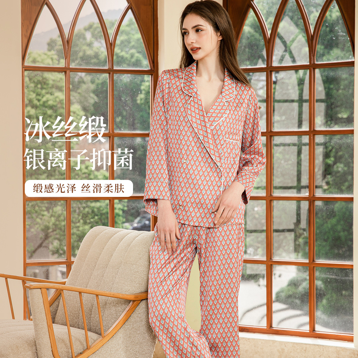 【冰丝缎】丝滑睡衣女春夏深V性感家居服套装可外穿法式复古空服 389835