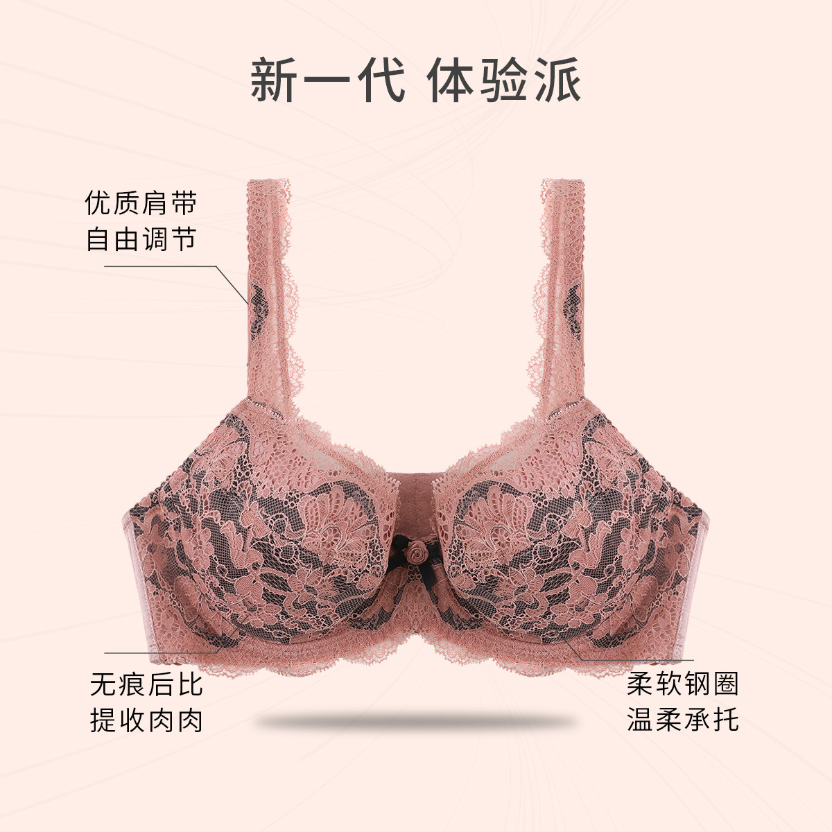 【无痕美背】聚拢无钢圈内衣夏薄款女光面蕾丝侧收副乳防下垂文胸 075979