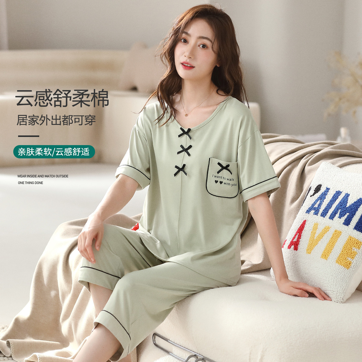 【宽松舒适无拘束】棉质亲肤睡衣女士家居服套装可外穿七分裤睡衣 026846