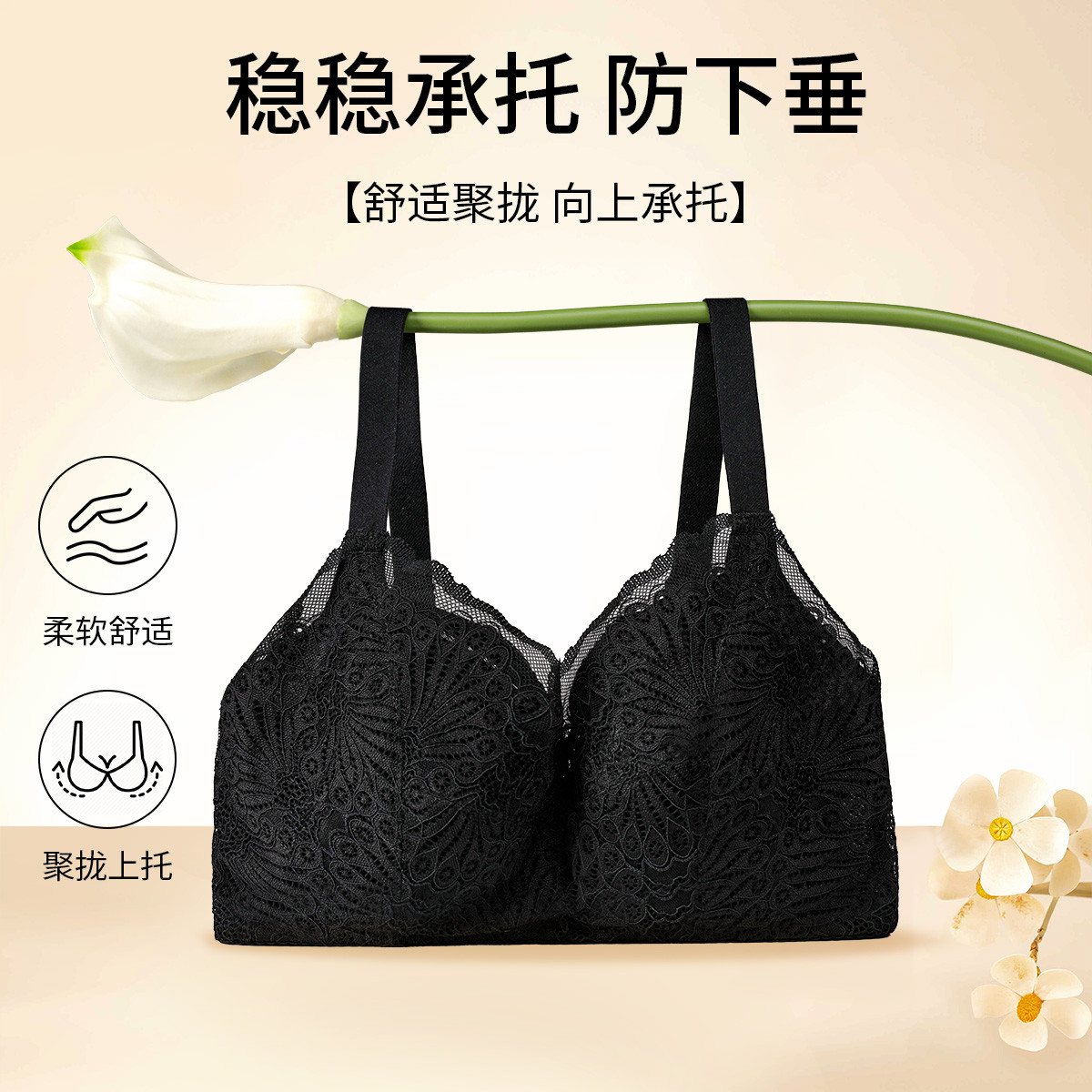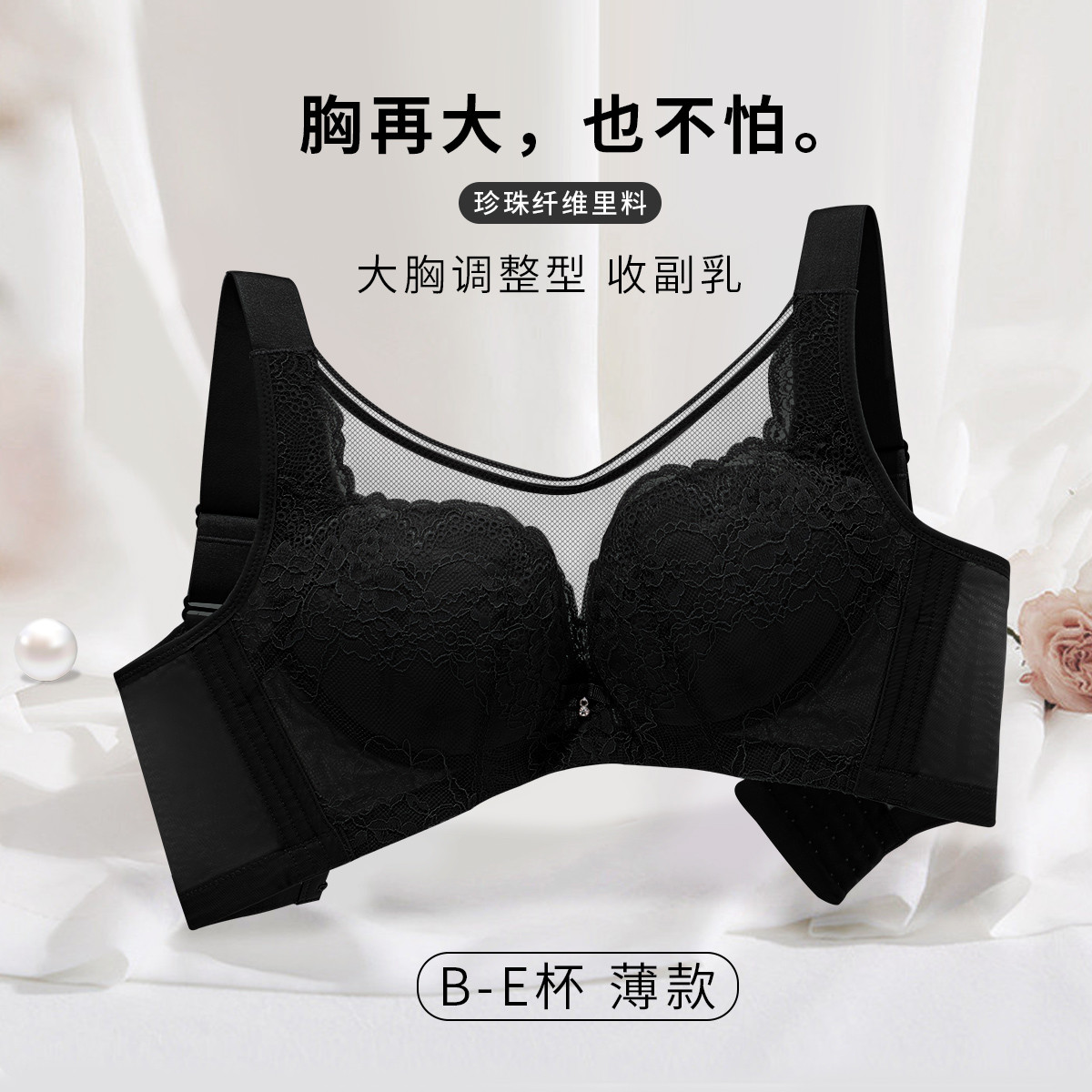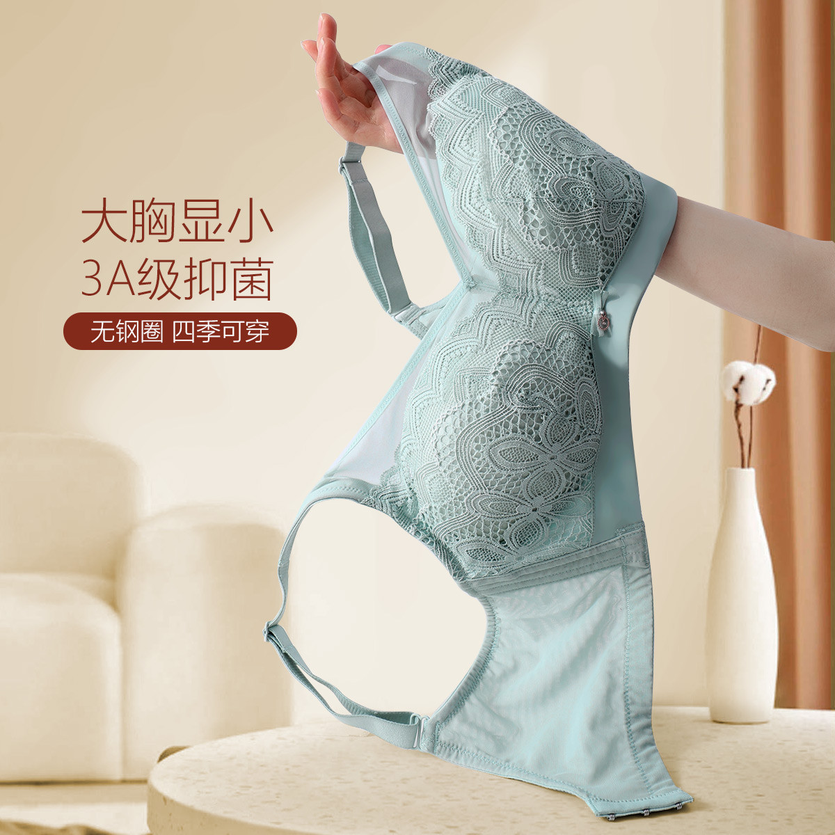 【大胸薄款防走光】大胸显小轻薄透气收副乳防下垂性感蕾丝内衣 434590