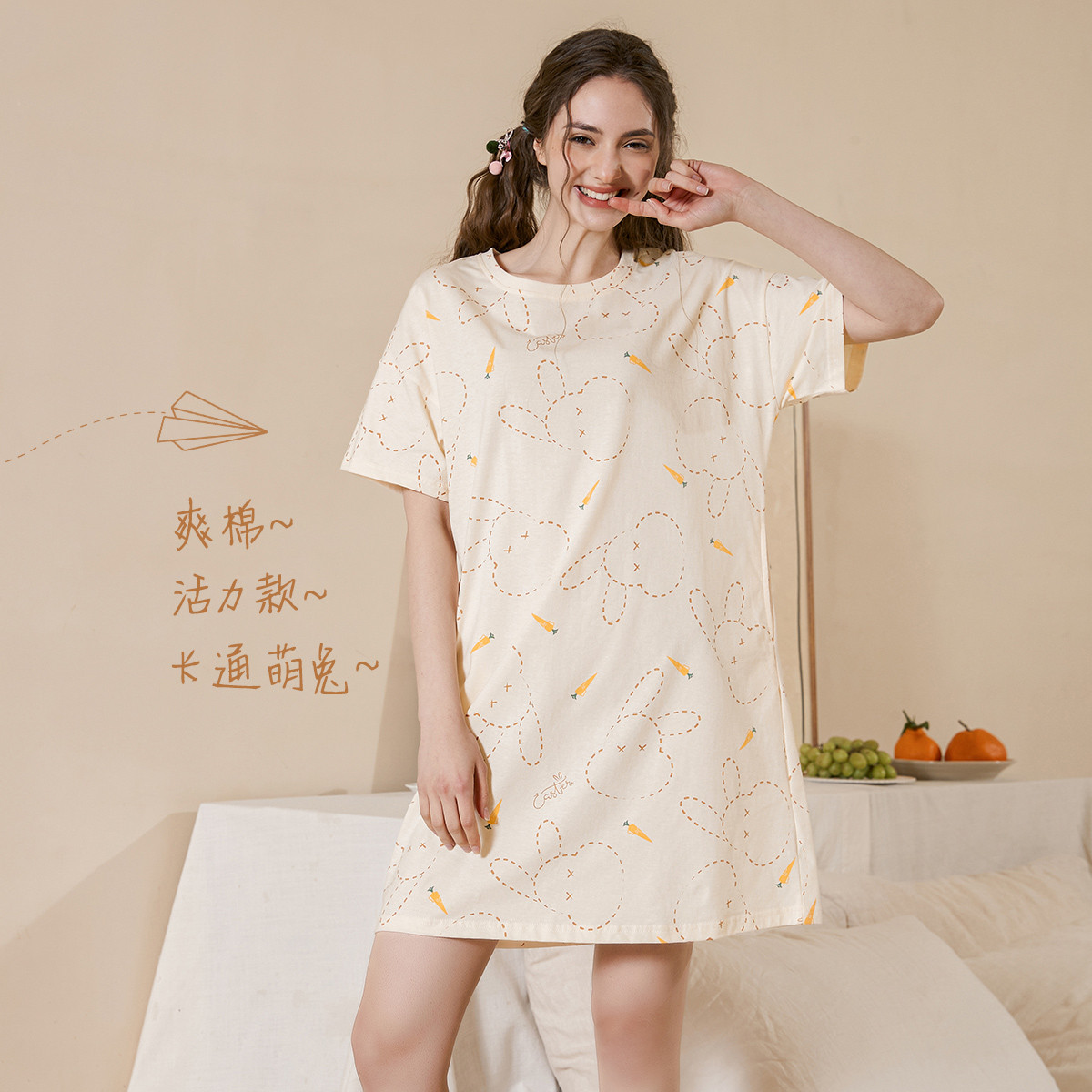 甜美卡通扎染短袖睡裙女士可外穿家居服睡衣夏季薄款舒适爽棉裙子 347595