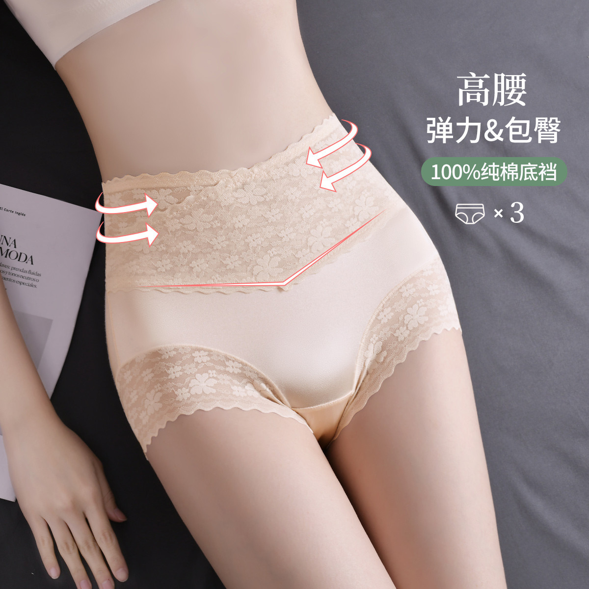 【高腰性感蕾丝】3条装舒适高腰收腹提臀透气纯棉裆女士内裤女 588766