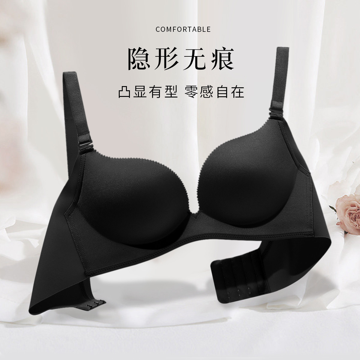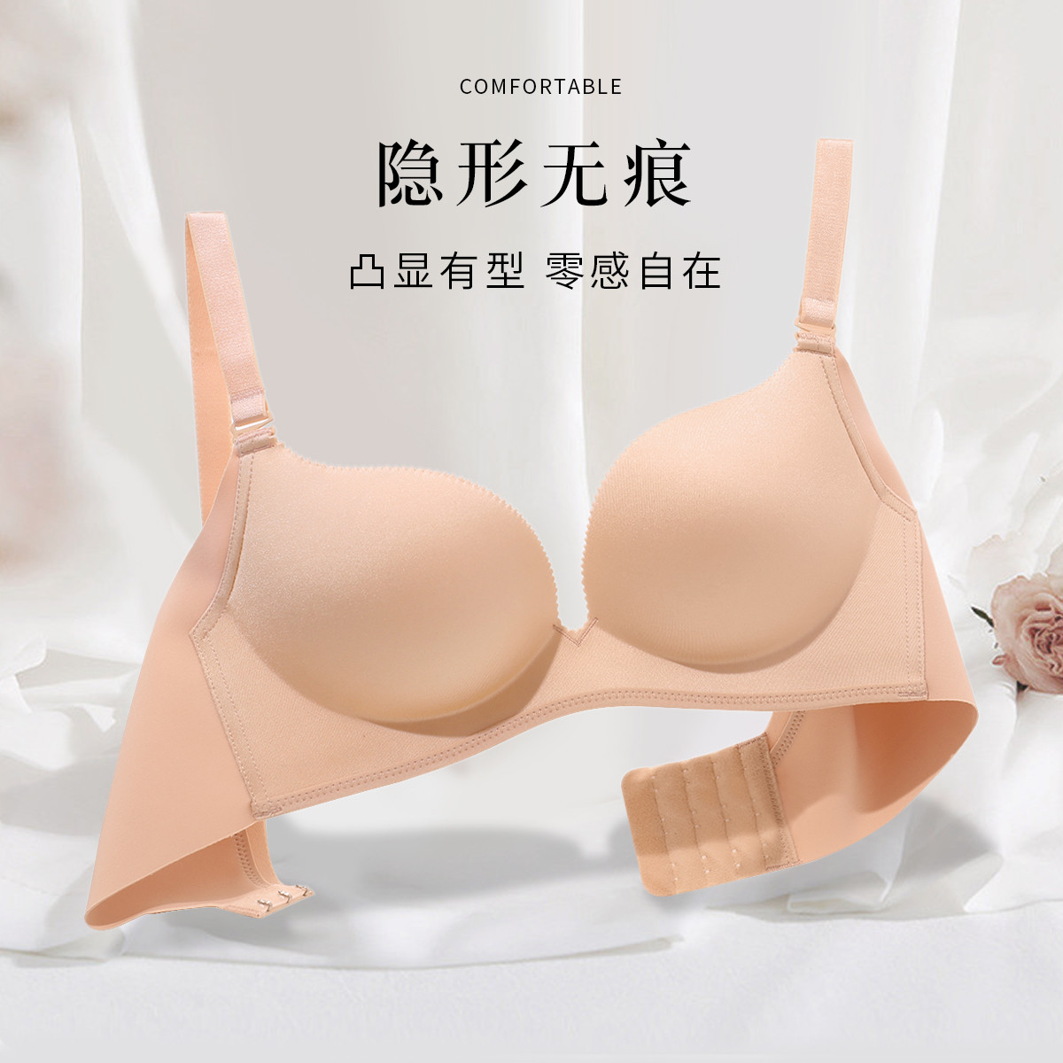 3D立体无钢圈聚拢光面舒适无痕内衣女调整型侧收提拉美背文胸罩 559262