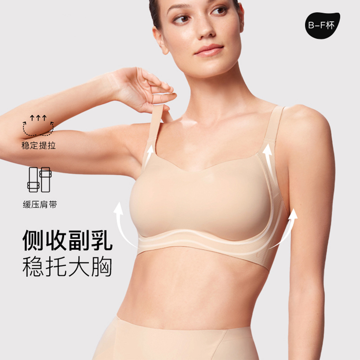 【提托侧收大胸显小】收副乳大杯背勾文胸聚拢提拉内衣女无钢圈 820864