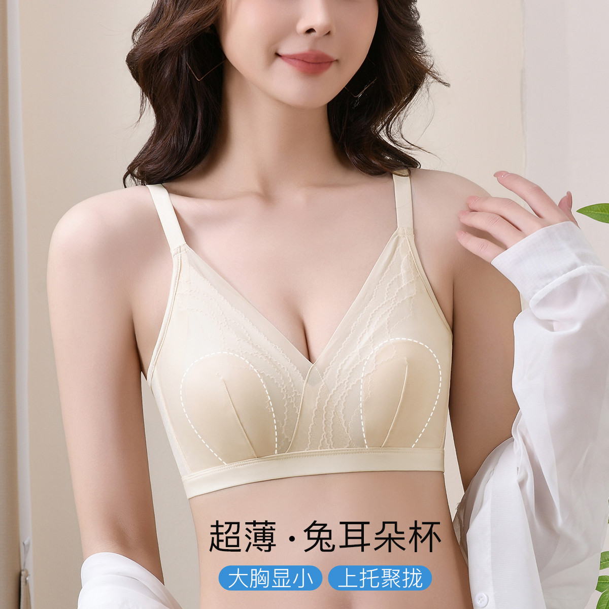 【轻薄透气兔耳朵】性感防凸点大胸显小无钢圈大码聚拢内衣文胸罩 152606