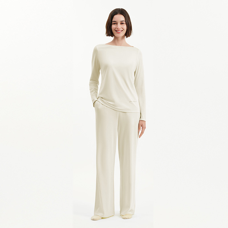 【柔软有型】云棉草本防螨睡衣套头一字领长袖长裤家居服套装女士 214208