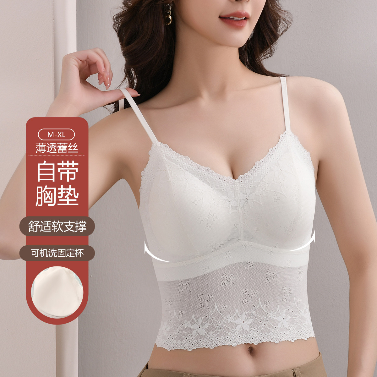 【可机洗固定杯】轻奢高级感蕾丝无钢圈内衣吊带打底带胸垫背心 095582
