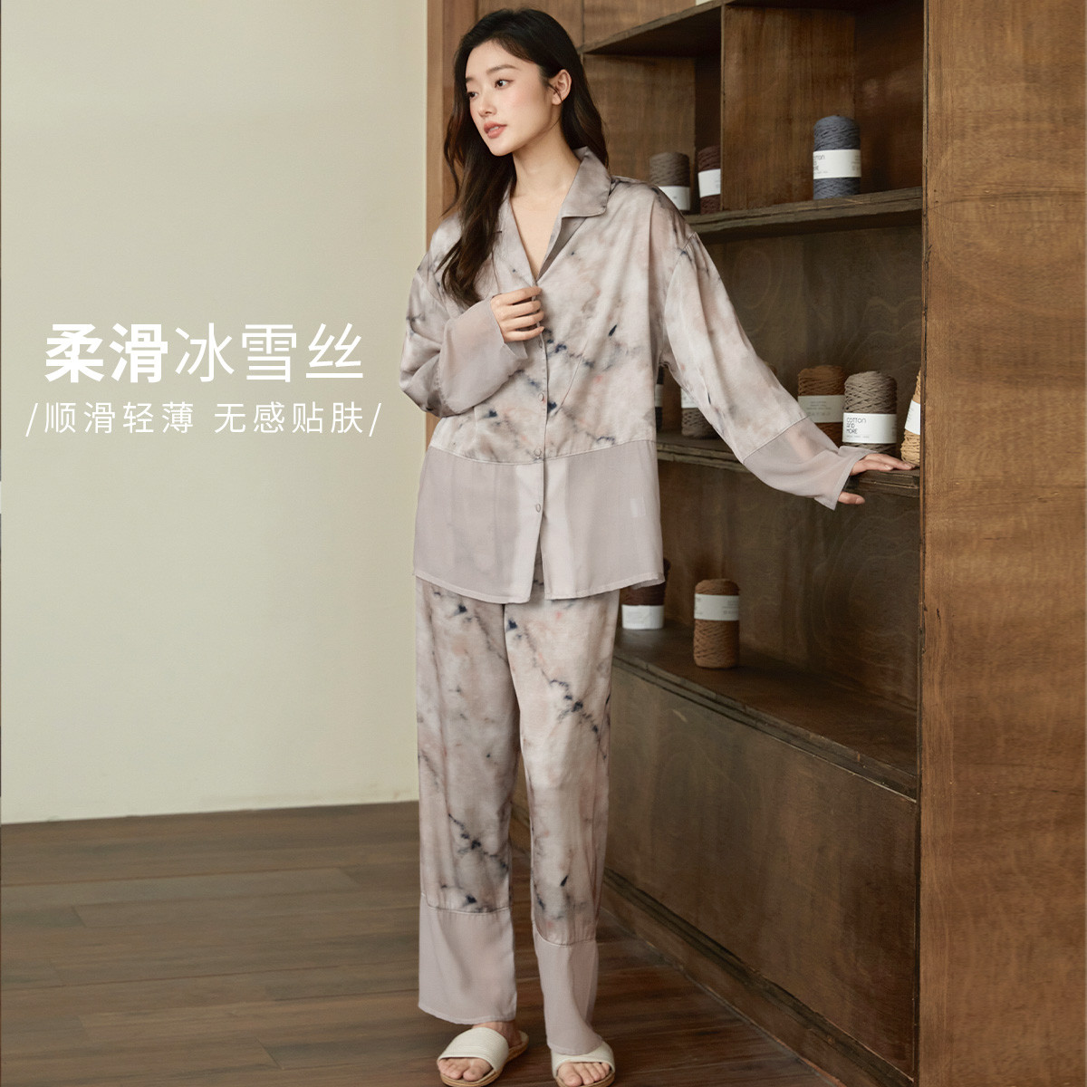 【无感亲肤冰雪丝】国风水墨扎染透气舒适阔腿长裤睡衣女士家居服 559435