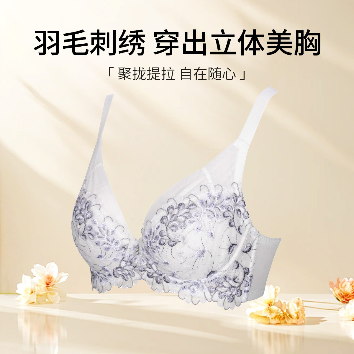 舒适承托3/4杯面选用立体刺绣感极强的羽毛刺绣花边设计文胸 453835