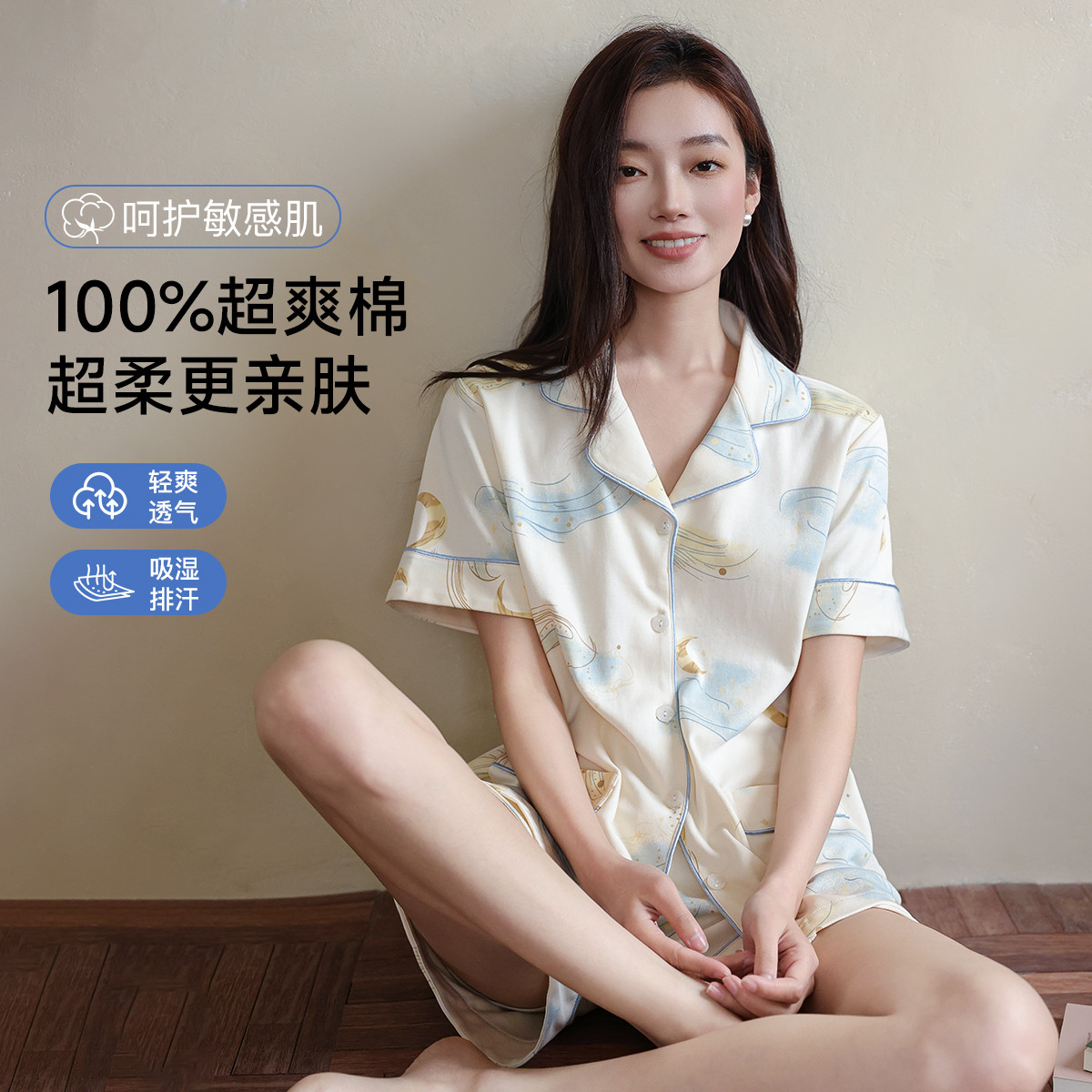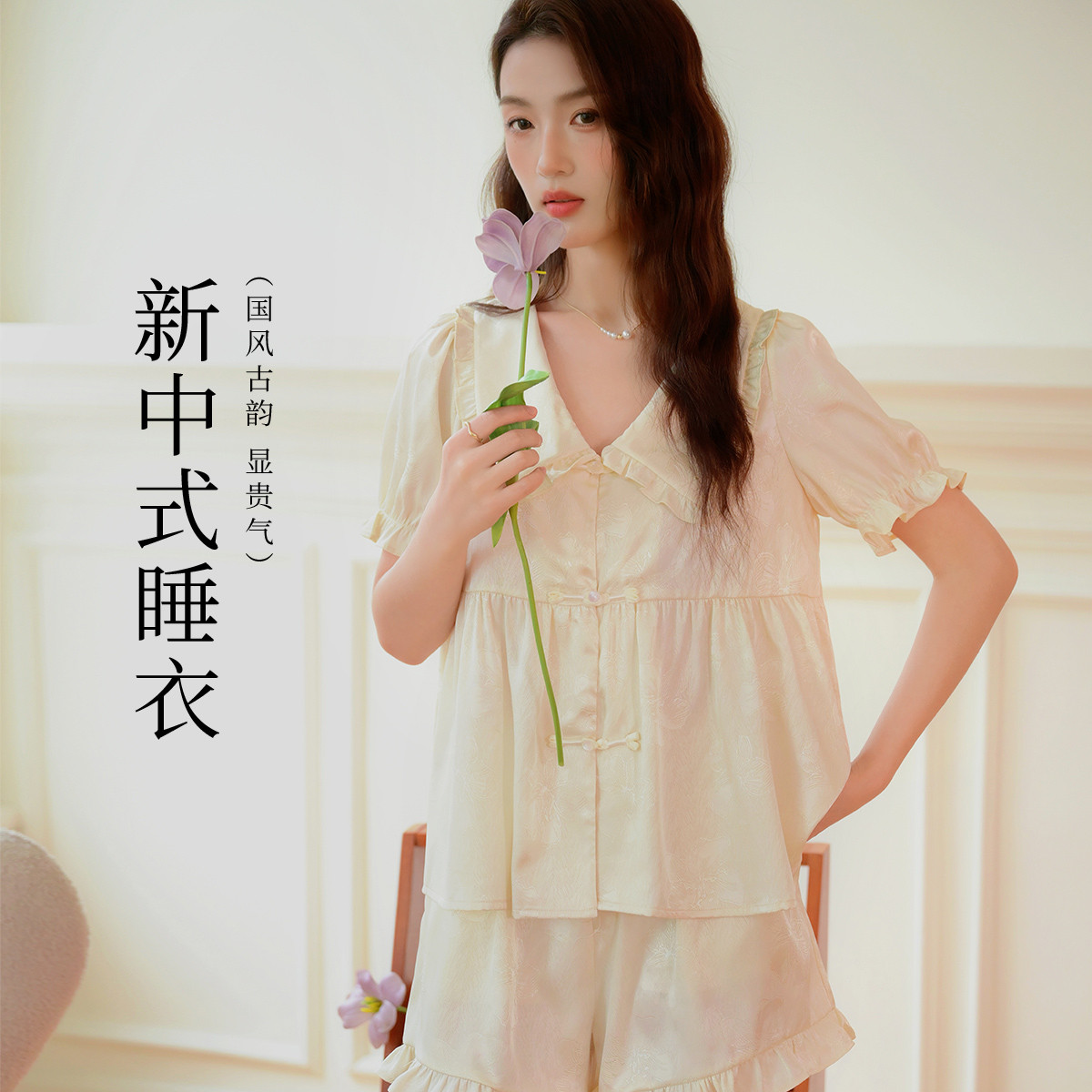 【新中式盘扣】夏季薄款亲肤短袖短裤家居服套装可外穿女士睡衣 694987