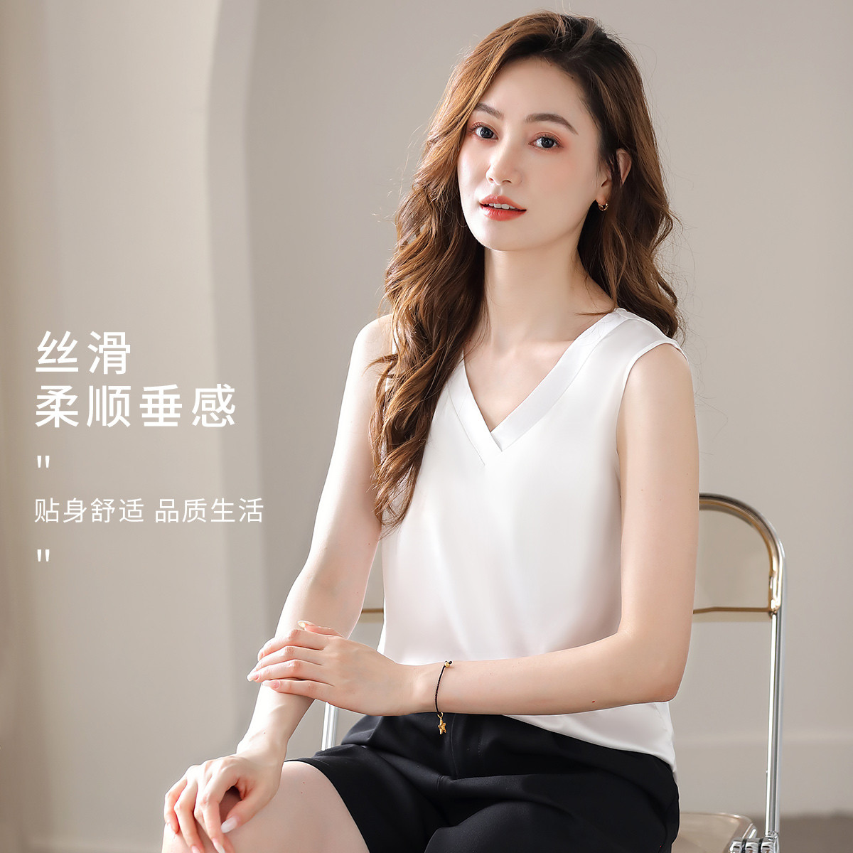 【舒适柔顺】纯色V领性感OL宽吊带背心女背心大衣打底内搭套头 864779