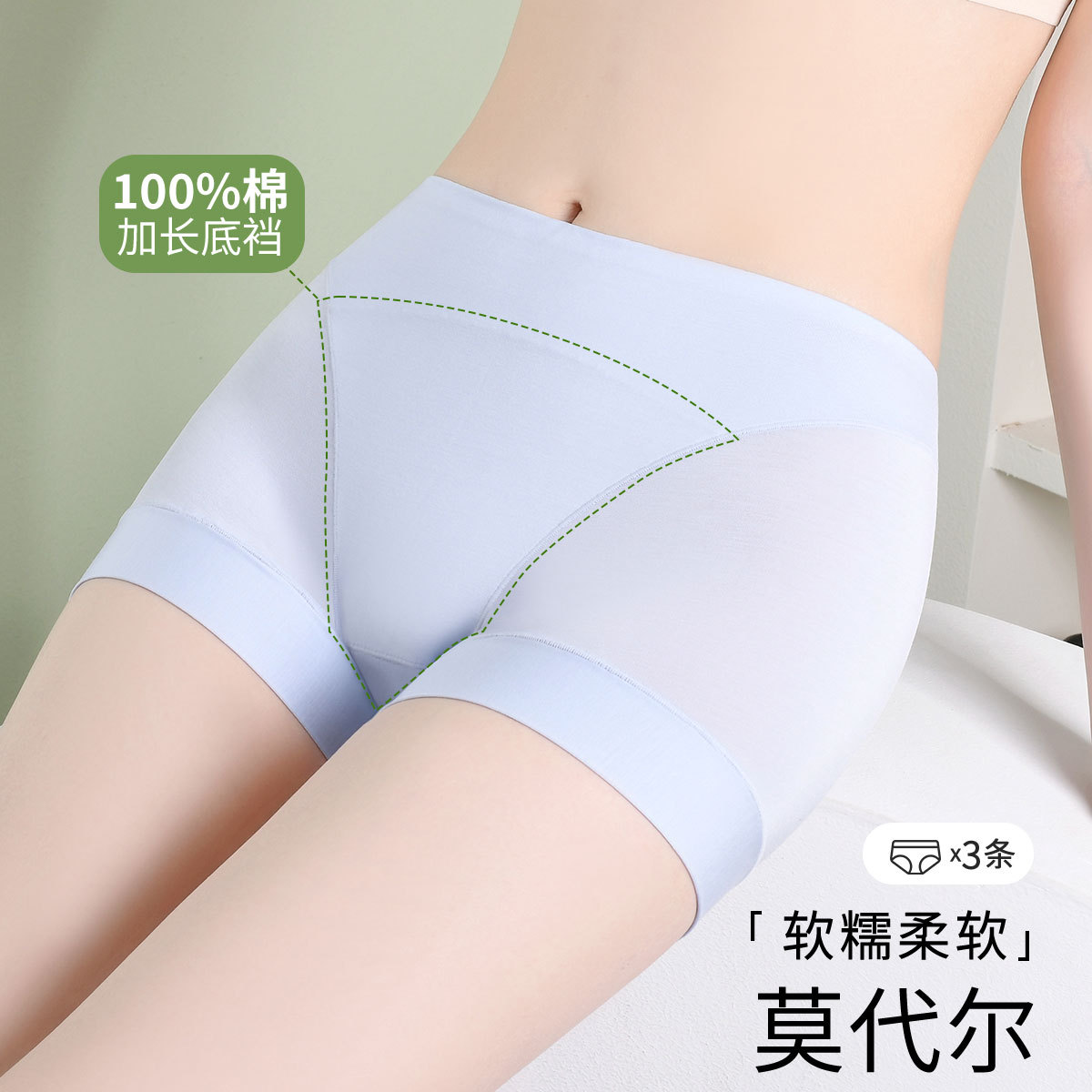 【莫代尔舒适柔软】3条装防走光加长裆四角裤纯棉底档女士内裤 303838