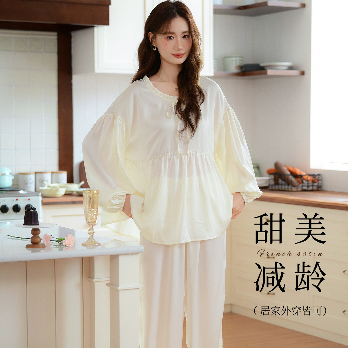 【法式优雅】高级感丝滑缎面女士冰丝睡衣春夏款可外穿家居服套装 304267