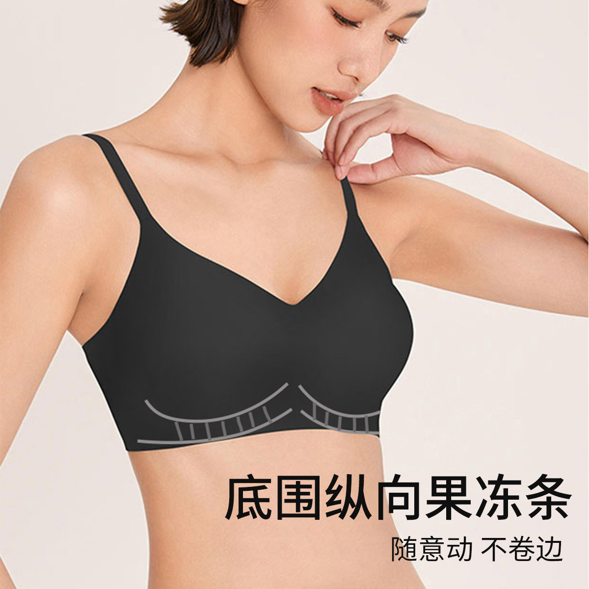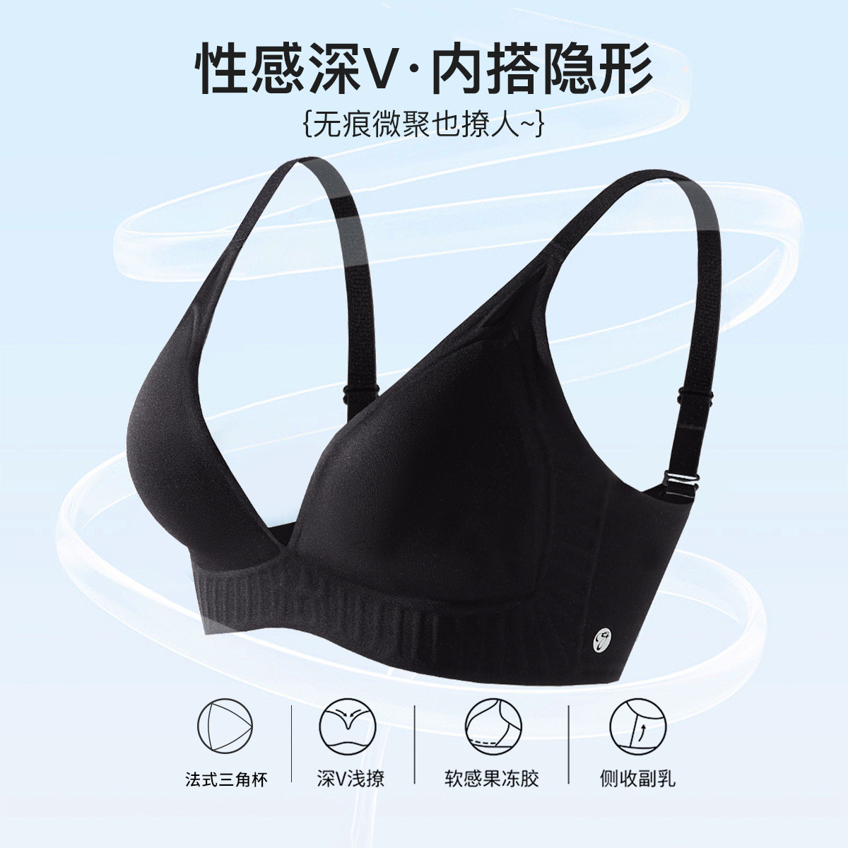 【法式三角杯】深V无痕果冻条内衣裸感聚拢侧收副乳性感文胸罩女 145547