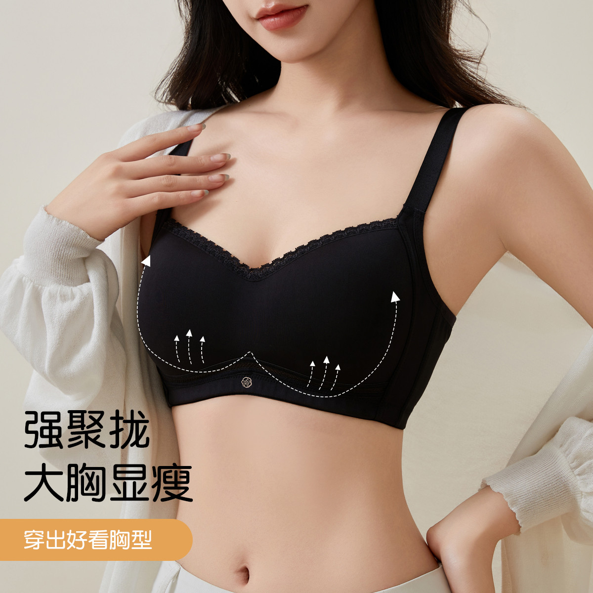 【大胸显小】桑蚕丝文胸透气无钢圈舒适收副乳防下垂调整内衣女士 141323