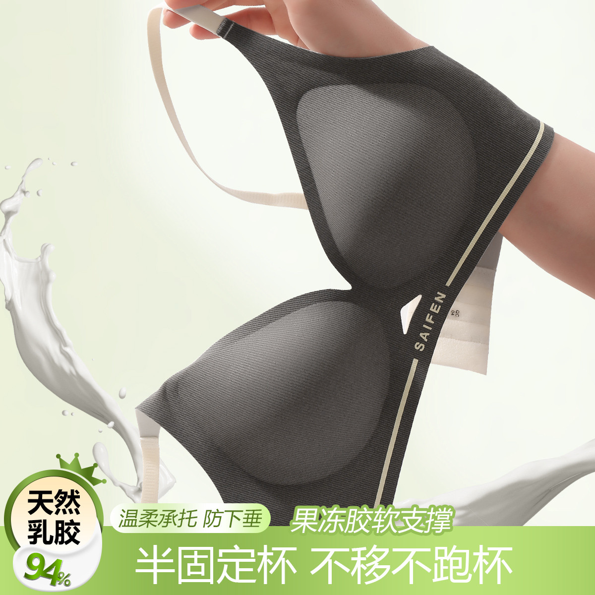 【含天然乳胶杯】抑菌透气侧收副乳高弹提拉无钢圈女士内衣文胸罩 327262
