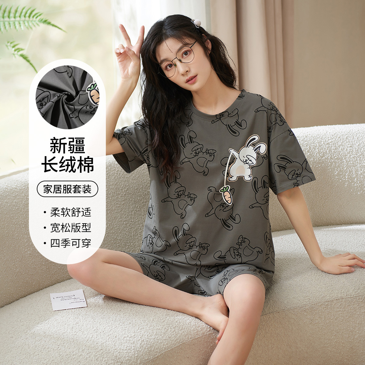 【春上新 可外穿】情侣新疆棉圆领休闲卡通短袖短裤家居服睡衣 810827