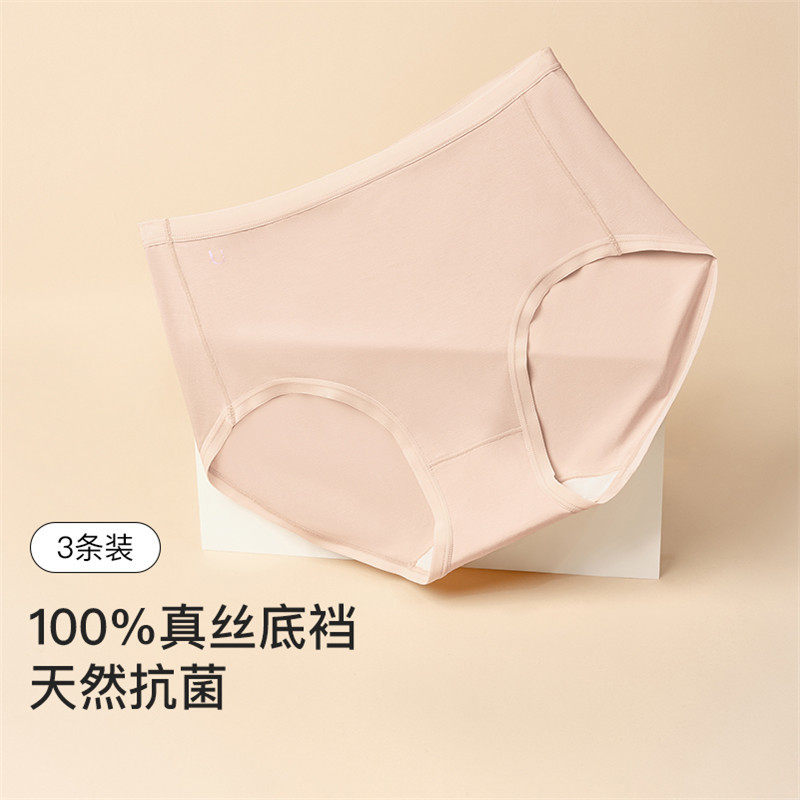 【3A抗菌档】3条装100%桑蚕丝底档三角裤高腰不夹臀内裤女 372288
