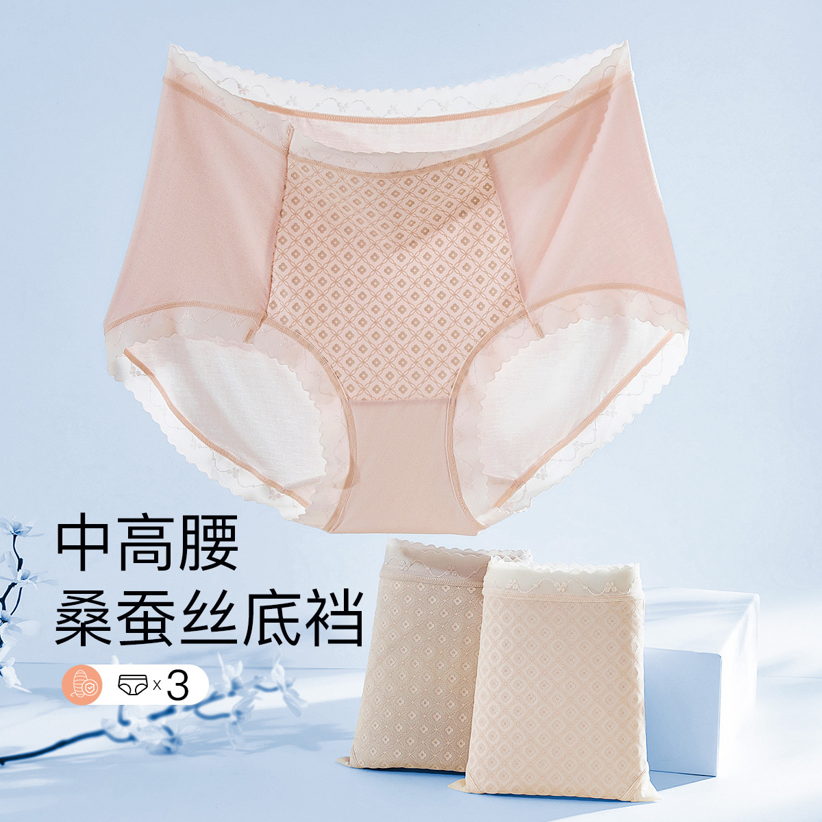 【含桑蚕丝裆】3条装高弹收小肚子轻盈印花中高腰女士内裤女短裤 943499