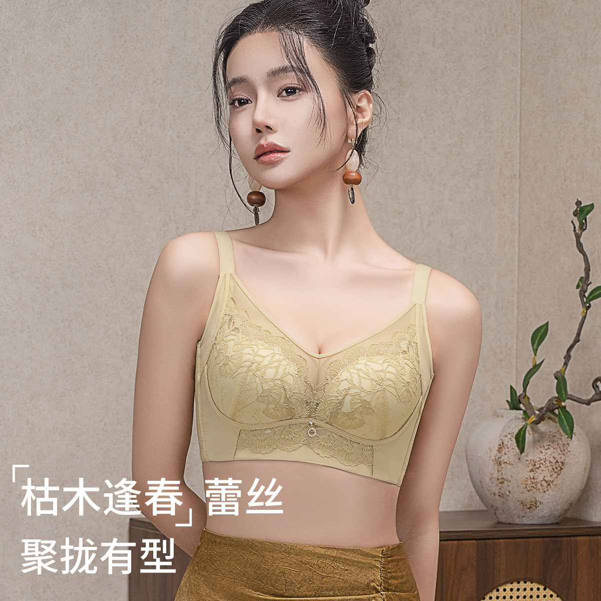 【新中式蕾丝小胸聚拢】无钢圈内衣女士文胸调整型防下垂上托显大 923403