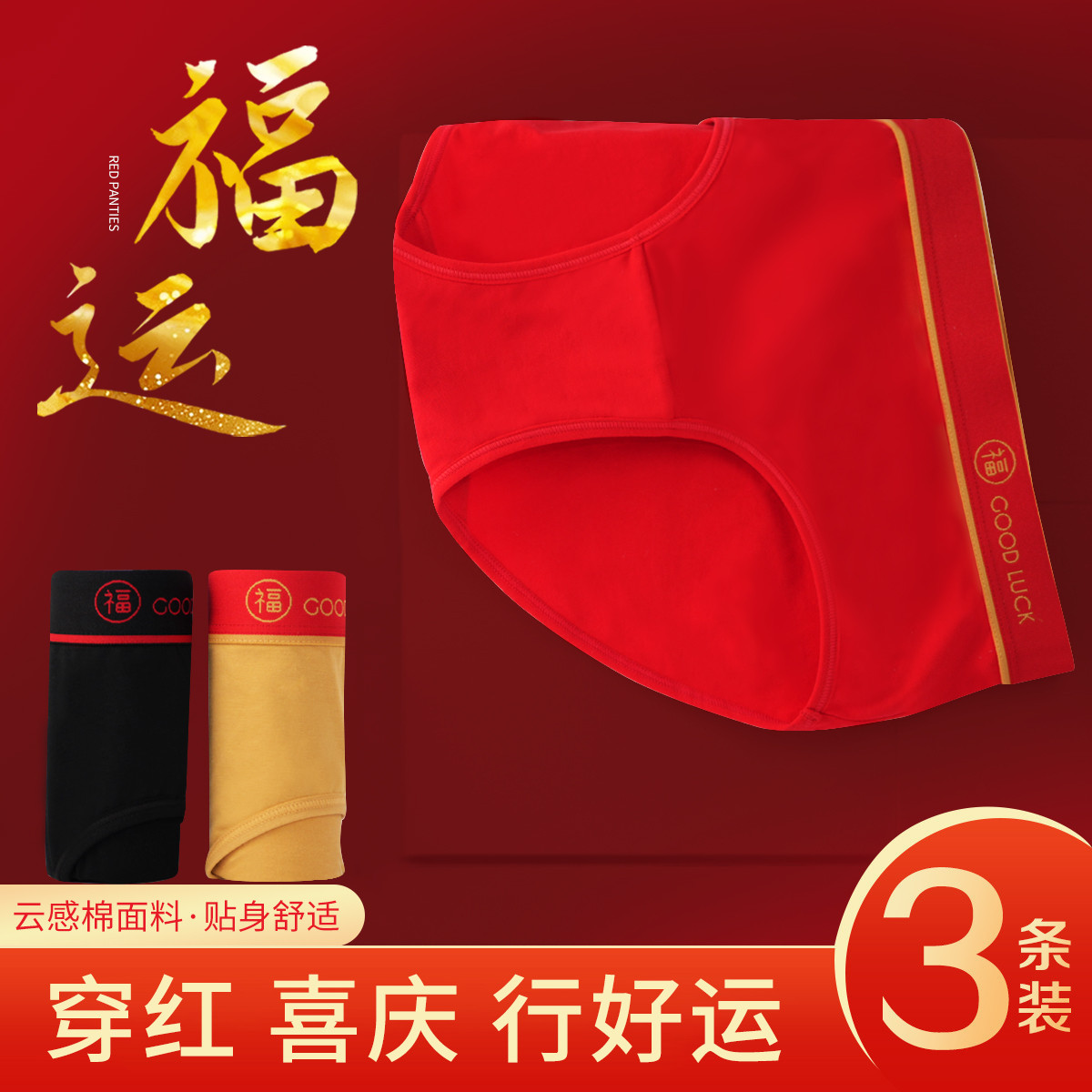 【情侣款】3条装男女同款红色内裤本命年结婚透气短裤情人节礼物 187851