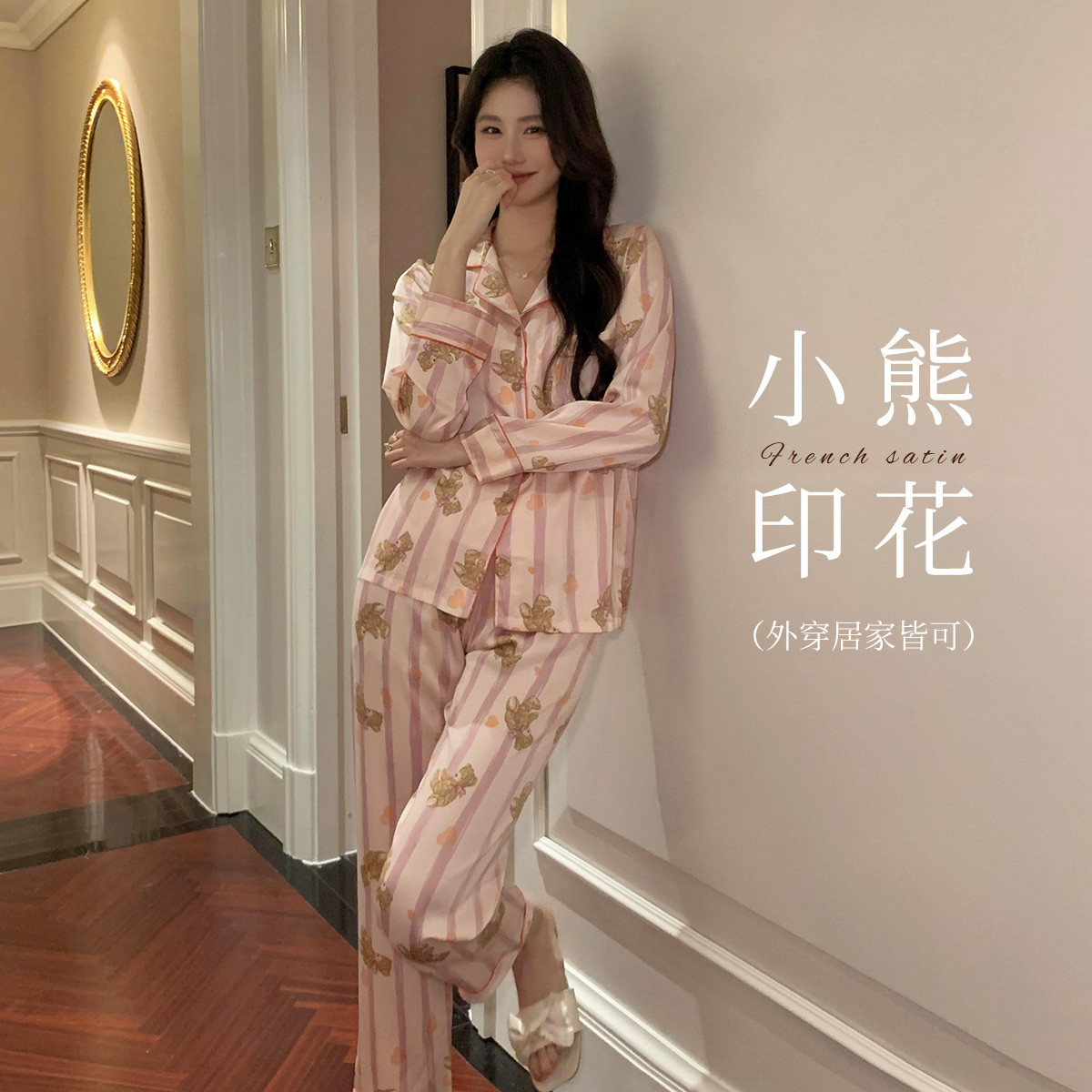 【法式轻奢】高级感缎面冰丝女士睡衣春夏长袖家居服套装可外穿 893323