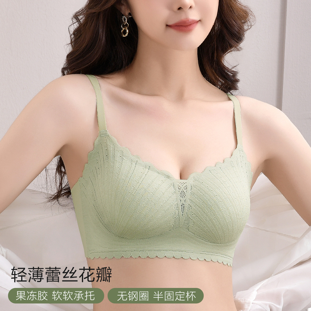 【2025小胸聚拢上托】精致蕾丝花瓣边无钢圈细肩带内衣文胸 780382